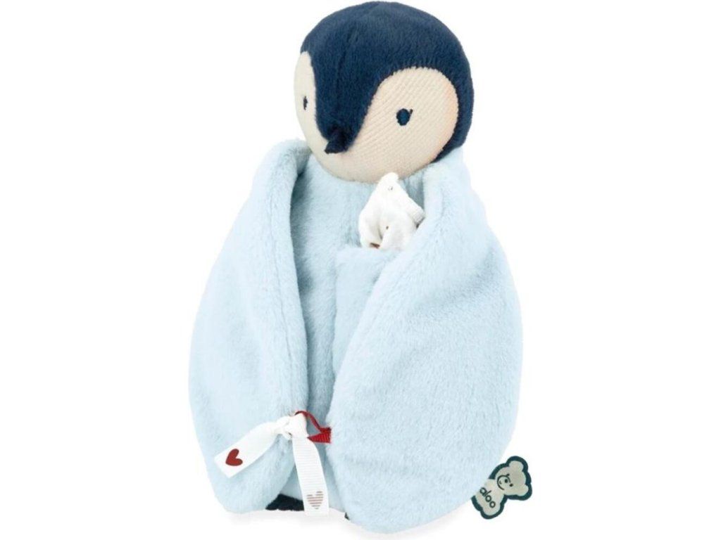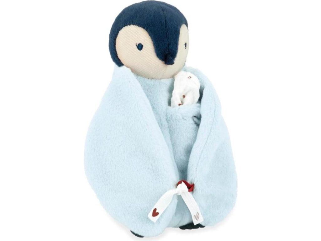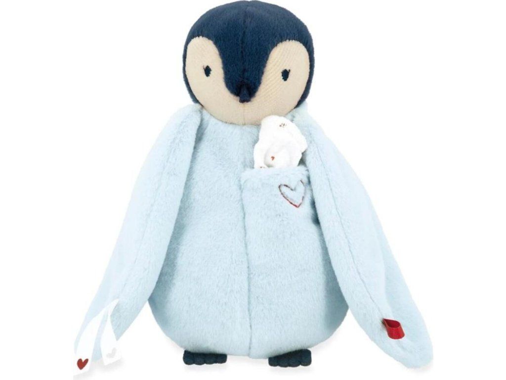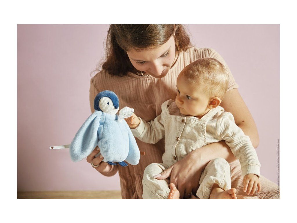 Tato plyšová hračka s modrým tučňákem je součástí série Complices, což je série plyšových hraček a přikrývek vyjadřujících lásku a bezpečí, které ilustrují pouto mezi miminkem a jeho rodiči, a tak ho jemně doprovázejí během prvních odloučení.