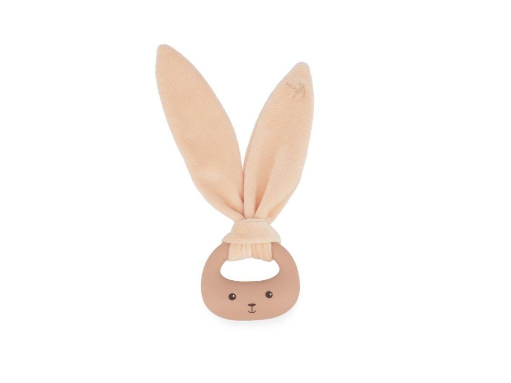 Je navržen pro blaho dítěte, nabízí dvě různé textury: hladký povrch vpředu s rozkošnou zajíčkovou tváří a vzadu jsou vroubky, které podporují objevení se prvních zoubků a masírují bolavé dásně. Velké, měkké ouška (16 cm) může dítě snadno uchopit a vy je můžete pověsit, kam chcete. Uši jsou navíc odnímatelné, což usnadňuje jejich mytí.