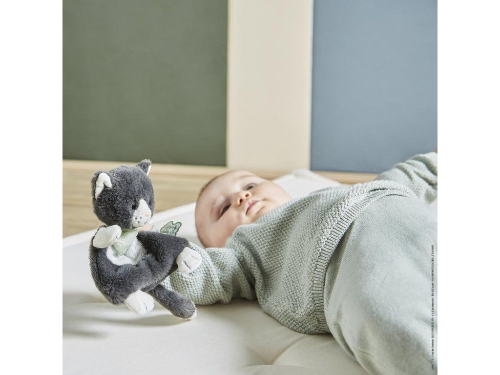 Díky svému přátelskému pohledu a okouzlující osobnosti je tato kočička připravena připojit se k miminku na celý život.Nabídněte děťátku malou kočičku jako muchláčka, který je synonymem citlivosti a empatie! Je vhodný od narození a má vše, co potěší každé miminko: prvky, které dítě snadno uchopí, nesrovnatelnou měkkost, hezkou tvářičku, velikost a tvar vhodný pro nejmenší.