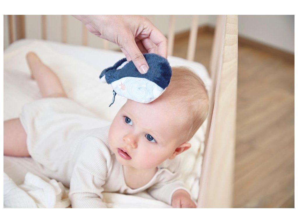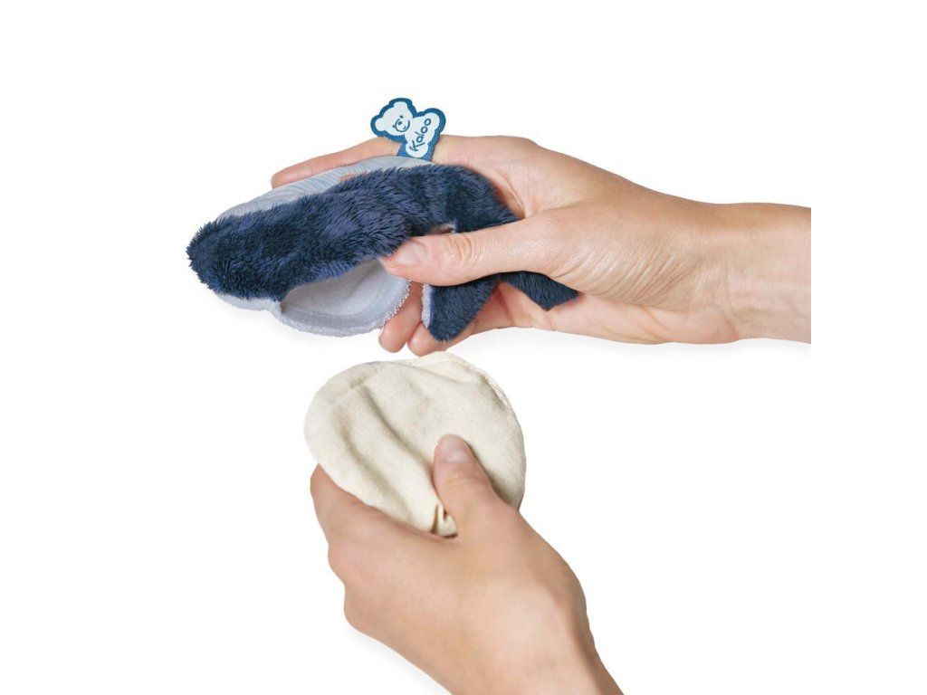 Tato plyšová přírodní chladicí podložka ve tvaru velryby je ideální plyšovou hračkou pro zmírnění bolesti dítěte již od narození. Má snímatelný potah a obsahuje odnímatelný sáček. Sáček naplněný hliněnými kuličkami a levandulovými květy je vhodné vložit do mrazničky pro studený efekt. Přístup k sáčku je zajištěn systémem suchého zipu, který zajišťuje bezpečné používání.
