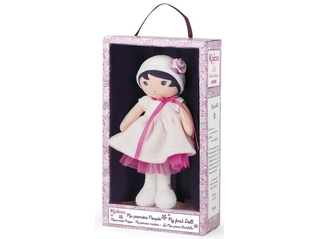 Na nohou má výšivku medvídka Kaloo, díky čemuž je ještě jedinečnější. Jméno své dcerky můžete napsat na dlouhou stuhu na zadní straně panenky, aby byla skutečně jedinečná, v Kaloo mysleli i na praktičnost panenky a proto ji rovnou zabalili do krásného dárkového balení.