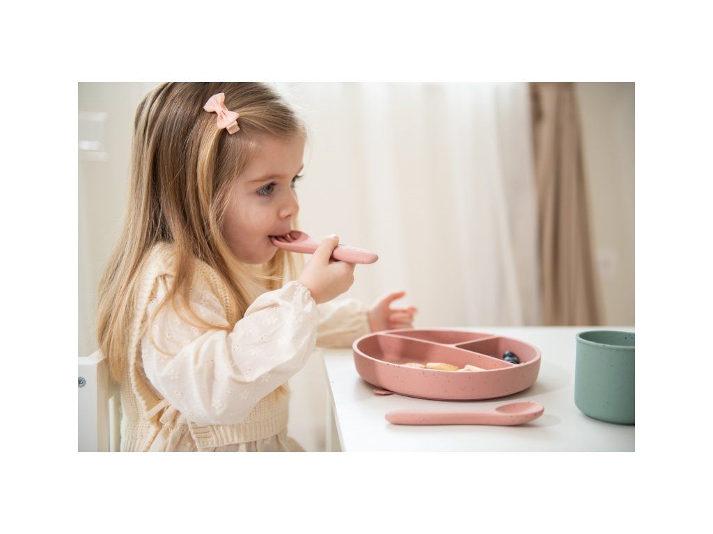 - Měkká, zaoblená špička je šetrná k dětským dásním a napomáhá samostatnému stravování
