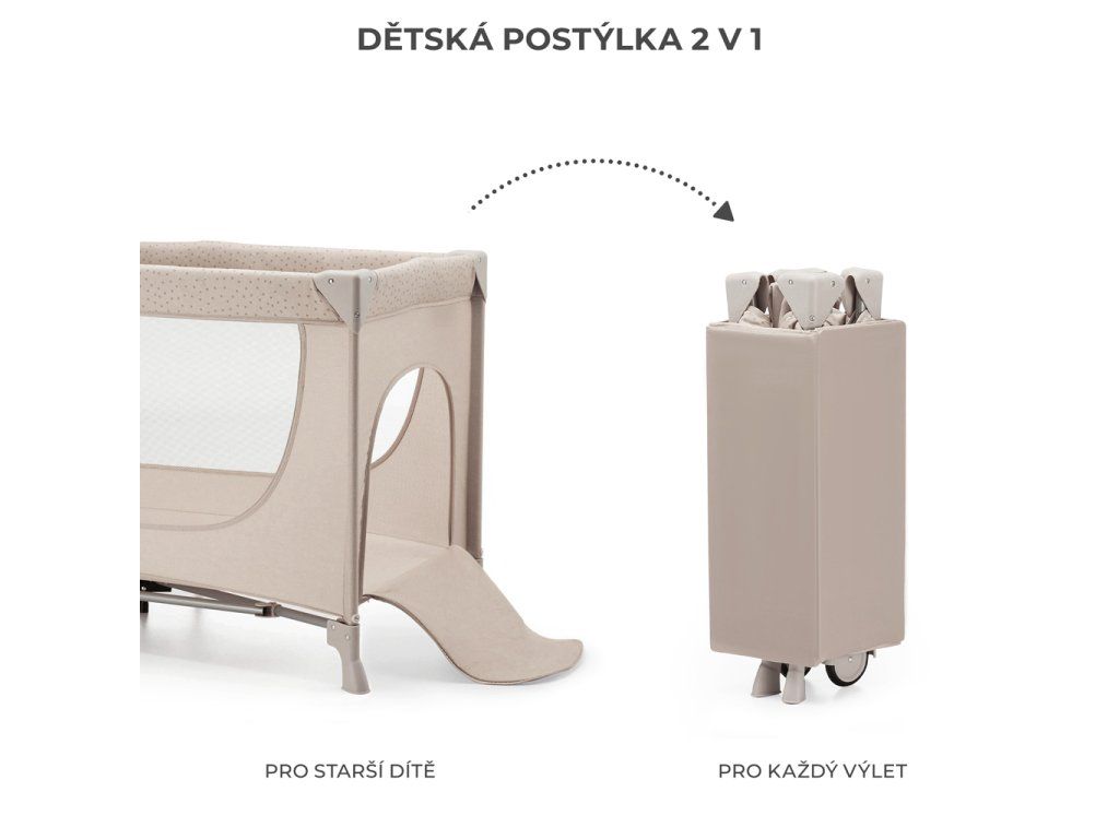 Dětská postýlka 2v1 - JOY 2 je jediná postýlka, která splňuje až 2 funkce: postýlka pro starší dítě a cestovní postýlka. Dětská postýlka má na boku výstup na zip, takže vaše děťátko může samostatně opustit svůj hrací prostor.
