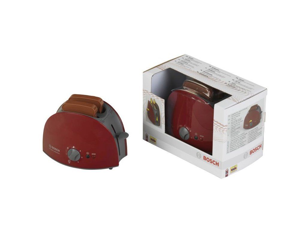 Dětský toustovač v licenci Bosch. Toustovač vydává zvuky jako opravdový. Baleno v krabici s výřezem. Doporučený věk 3+