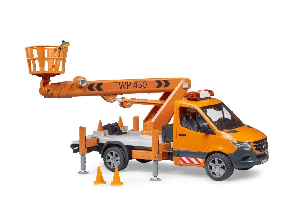 Progresivní, efektivní, spolehlivý – tak Mercedes Benz popisuje nový Sprinter. I v nejnovější generaci zůstává všestranným a všeobecně oblíbeným profesionálním dopravním nástrojem. Nejnovější variantou od firmy BRUDER je MB Sprinter s pracovním košem. Pro provádění prací ve výškách, např. na stromech, pouličním osvětlení nebo dopravních značkách. Pracovní koš BRUDER bezpečně zvedne každou figurku z Bworldu do výšky až 70 cm. Díky integrované technologii zůstává koš pro osoby v horizontální poloze po celou dobu, kdy je rameno jeřábu vysunuté. Vozidlo je zajištěno 4 výsuvnými opěrami a součástí dodávky jsou také 4 dopravní kužely pro uzavření pracovního prostoru. Dveře kabiny Sprinteru jsou samozřejmě otevíratelné a pro bezpečnost a dobrou viditelnost vozidla je v nich již nainstalován modul se světlem a zvukem. Baterie 3 x LR44 jsou součástí. Kompatibilní s figurkami Bworld. Vyrobeno z vysoce kvalitních plastů, jako je ABS. Měřítko 1:16. Lze použít pro hru uvnitř i venku. Rozměry auta: 20 x 15,7 x 51,3 cm. Rozměry balení: 23 x 18,9 x 57,2 cm. Věk: 4+