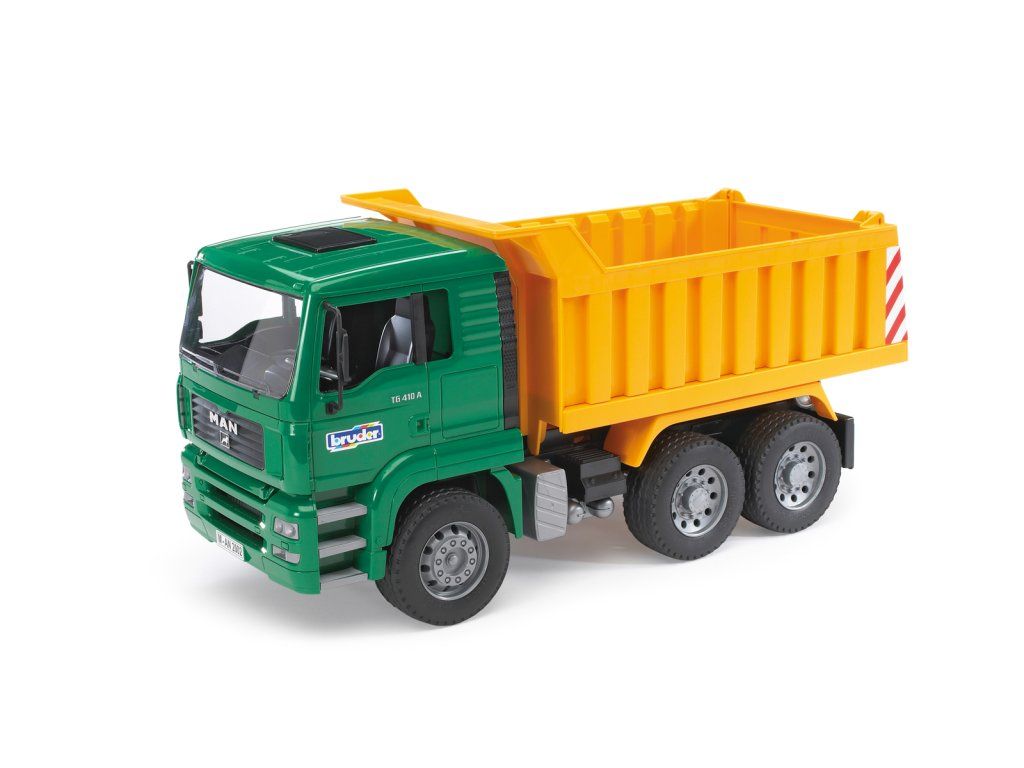 Stavební vozy - Nákladní auto MAN 1:16. Kabinu u tohoto vozidla lze sklopit a tak je možné nahlédnout na blok motoru. Vnější zrcátka jsou také sklopná podle přání uživatele. Manipulace s korbou je velmi jednoduchá - lze ji snadno sklopit a vrátit do původní polohy. Nákladní auto je vyrobeno z vysoce kvalitního plastu, který je odolný proti nárazu. Vozidlu nechybí ani pevné profilové pneumatiky, které mu umožní snadný pohyb v náročném terénu. Je vhodný do interiéru i exteriéru. Při hraní lze také využít dalších kombinací např. s přívěsem pro stavbu 02710 nebo s modulem se světlem a zvukem 02801. Rozměry: 450 x 220 x 170 mm