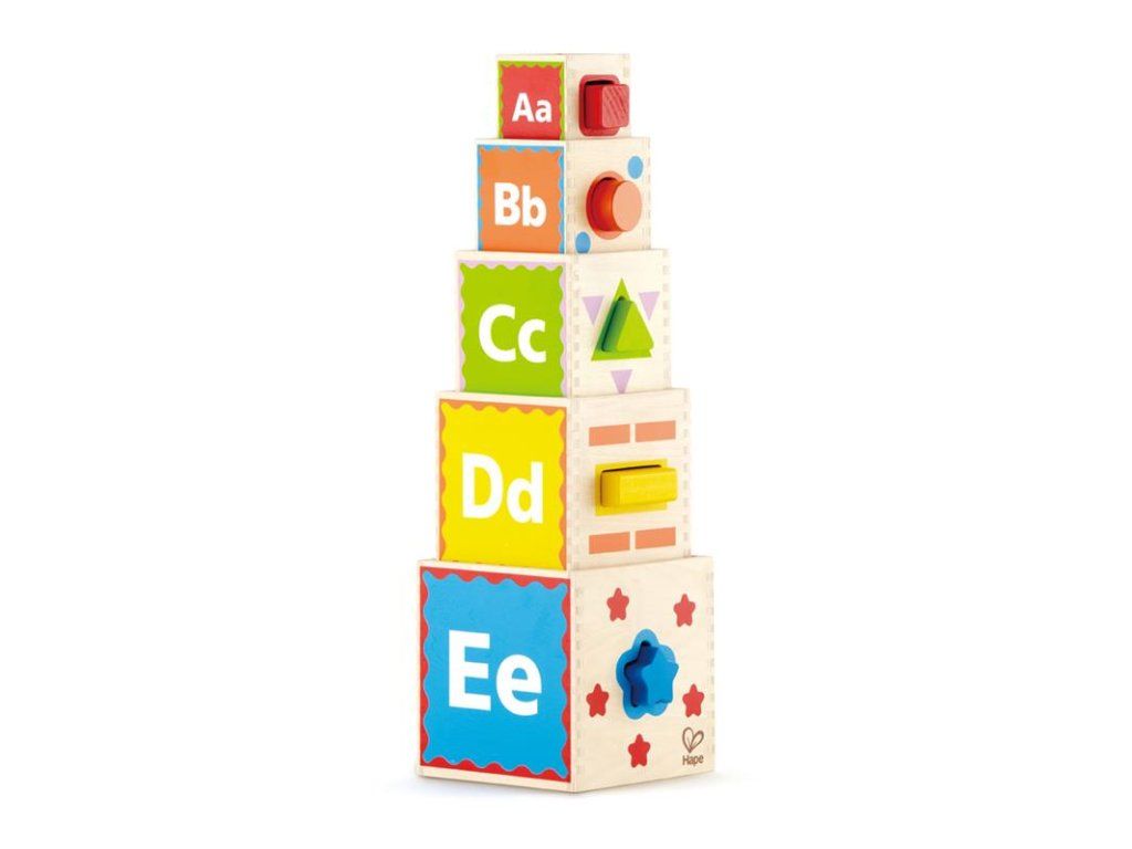 Pyramida z kostek s vkládacími tvary - to představuje nové možnosti hry pro vaše děti! Balení obsahuje pět různě velkých kostek, z nichž každá má pět stran s písmeny, obrázky a číslicemi, barvami a tvary. Dále se děti naučí vkládat různé tvary. Hračka rozvíjí motorické a logické schopnosti dětí. Věková kategorie: 18m+. Velikost balení: 25,5 x 15 x 24 cm.