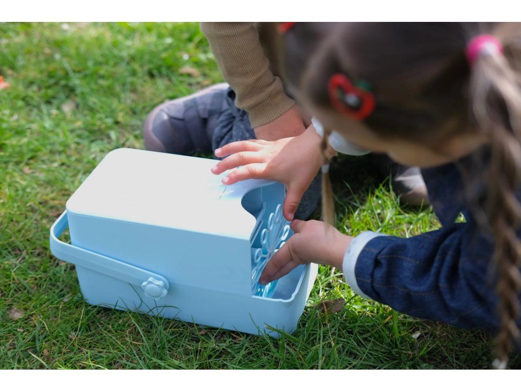 Stroj na výrobu modrých bublin Až 1800 bublin za minutu! Zábava, která nikdy nekončí! Tento stroj na bubliny je perfektní doplněk k jakékoli akci – ať už jde o narozeninovou oslavu, zahradní hry nebo jen zábavu s rodinou. Stačí zapnout a bubliny začnou létat ve vzduchu jako nikdy předtím. Vytváří obrovské, barevné bubliny, které potěší děti i dospělé. S novým, stylovým designem a snadným ovládáním je ideální pro každou příležitost. Stroj je přenosný a bezdrátový, poháněný čtyřmi bateriemi typu C (nejsou součástí balení). Díky kapacitě nádržky pro bublinový roztok 300 ml vám umožní užít si hodiny zábavy bez nutnosti neustále jej doplňovat. Se 3 různými nástavci na výrobu bublin můžete být kreativní a vytvářet bubliny v různých velikostech a tvarech. Stroj vytváří bubliny do vzdálenosti 4 metrů a dokáže vyprodukovat až 1800 bublin za minutu – ideální pro velké oslavy nebo zahradní párty. Díky svému odolnému a kvalitnímu materiálu z RABS je tento stroj připraven vydržet dlouhé hodiny zábavy!