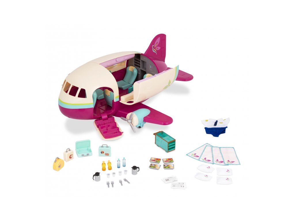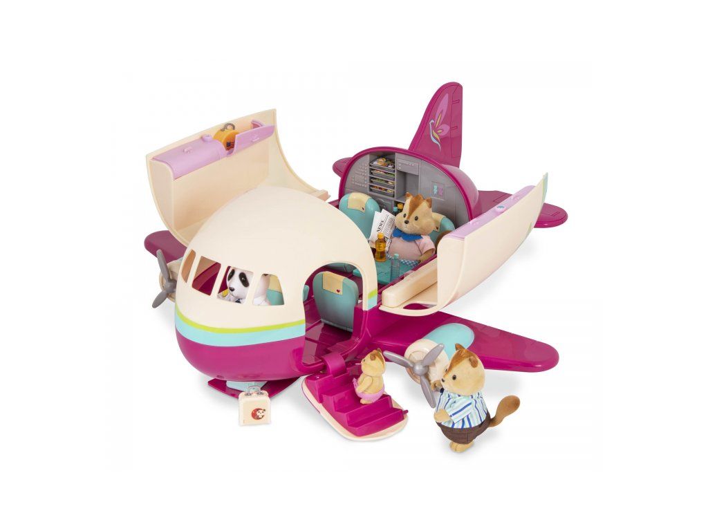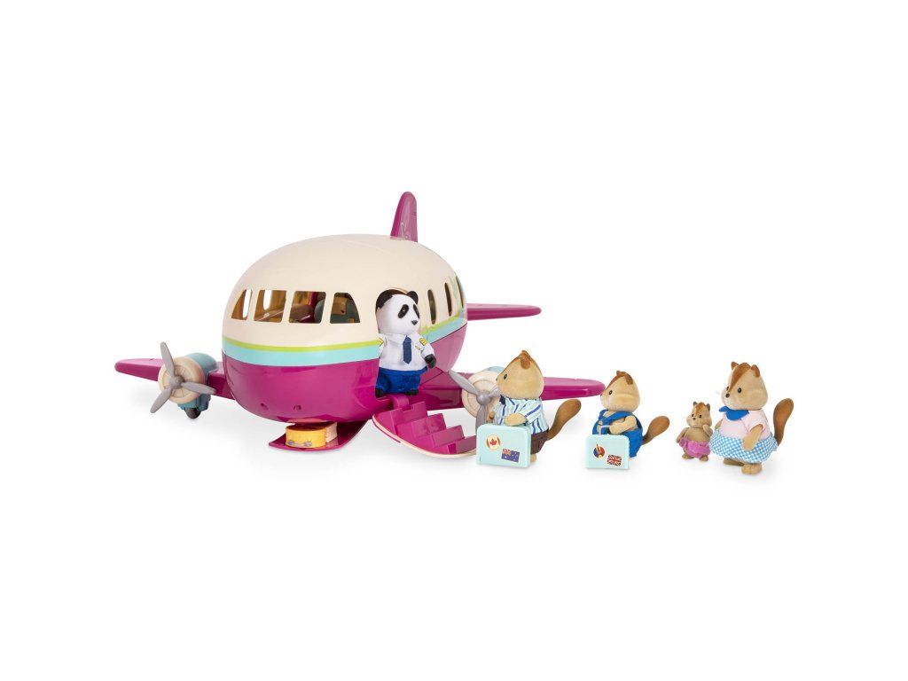 Luxusně vybavené letadlo přepraví obyvatele Honeysuckle Hollow na dovolenou s maximálním komfortem! Polštářky a přikrývky zajistí pohodlné spaní během letu, bohaté občerstvení zpříjemní pasažérům každý let. Uniforma pilota je součástí balení, stačí tedy vybrat některou ze samostatně prodávaných postaviček zvířátek Li'l Woodzeez a do uniformy ji obléknout!