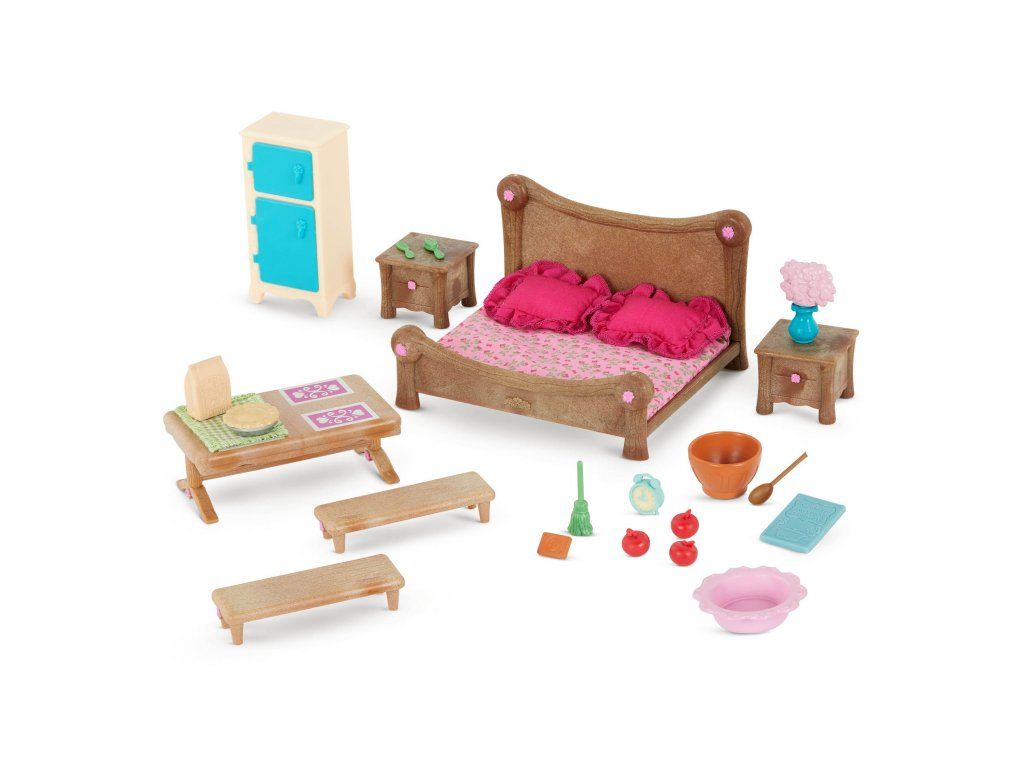 Sada nábytku vám umožní vybavit ložnici a jídelnu v domečku pro postavičky zvířátek Li'l Woodzeez. Až se po dobré večeři budou zvířátka ukládat ke spánku do pohodlné postele, nezapomeňte nastavit budík!Dům i zvířecí figurky se prodávají samostatně.