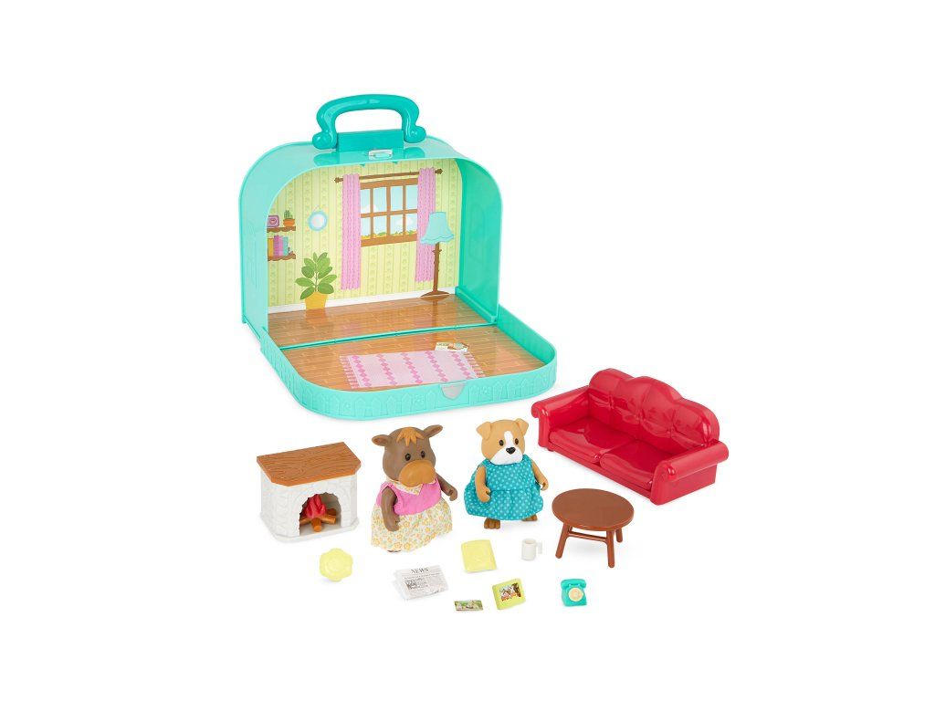 Cestovní sada hraček Li'l Woodzeeze v praktickém kufříku umožní vašemu dítěti hrát si se svými oblíbenými postavičkami kdekoli na dovolené, výletech či během víkendu u starých rodičů. Kufřík se po otevření promění v bohatě vybavený obývací pokoj s nábytkem, doplňky a postavičkami buldoga Avy a losice Eloise.