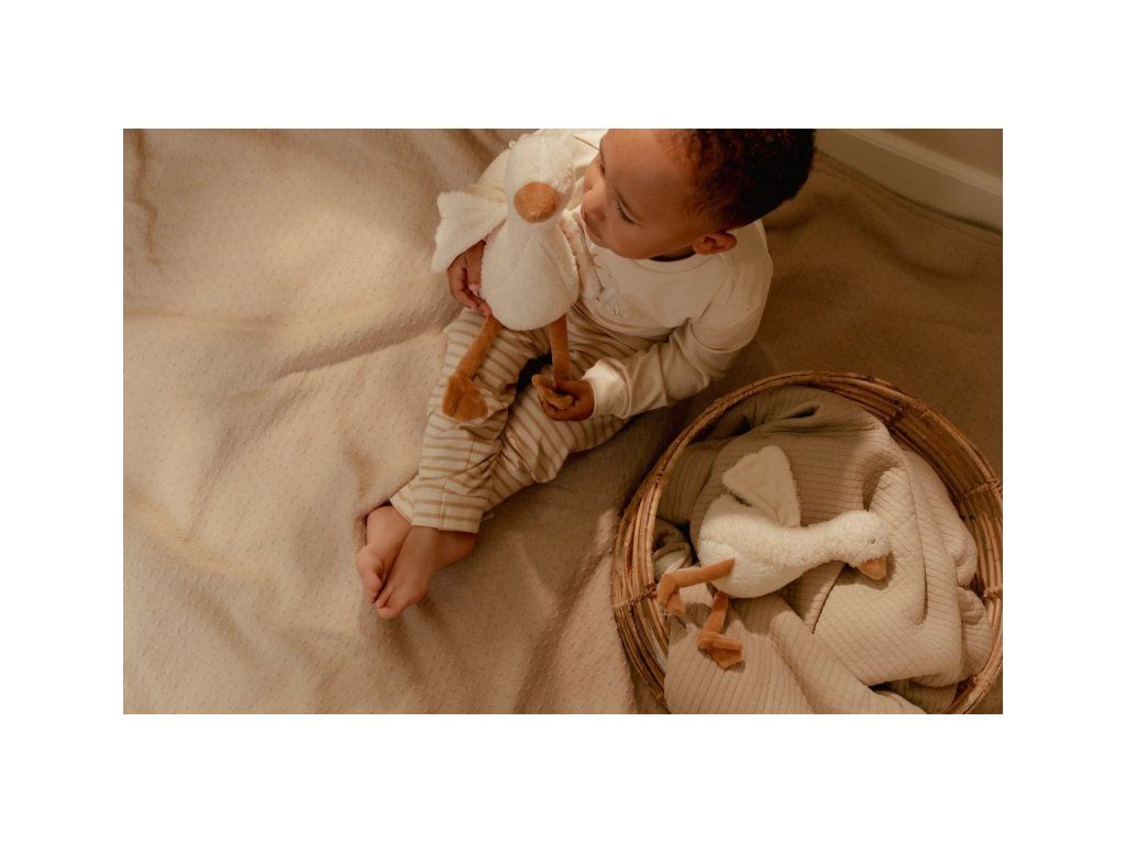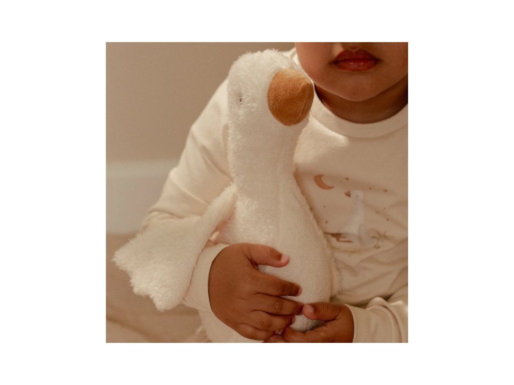 Jemná plyšová hračka v podobě roztomilé husičky je ideální jako mazlíček do postýlky pro lepší usínání vašeho dítěte. Husa umí sedět a může se tak stát i krásnou dekorací v dětském pokoji.