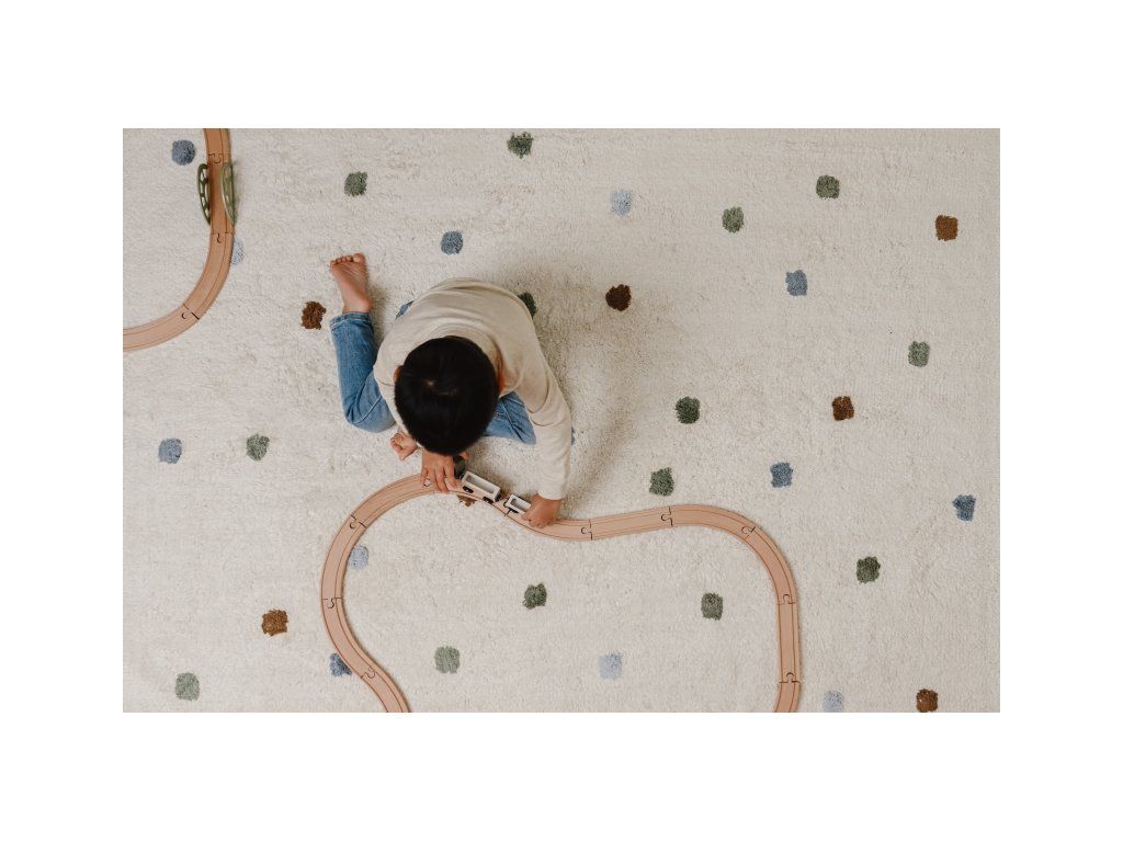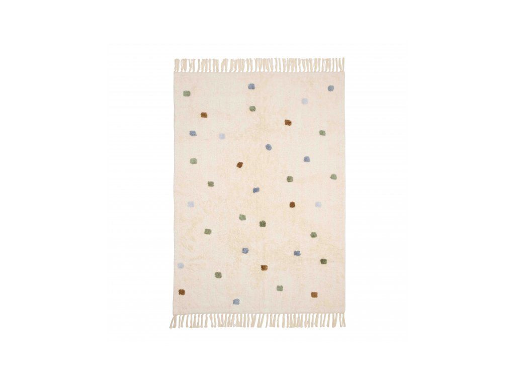 Vneste do dětského pokoje hřejivou a veselou atmosféru s koberečkem od značky Little Dutch! Koberec má béžový podklad zdobený hravými tečkami v modré, zelené a okrově žluté barvě. Třásně na kratších stranách dodávají designu útulný a originální vzhled.Vašemu dítěti se na něm bude krásně sedět a hrát si.