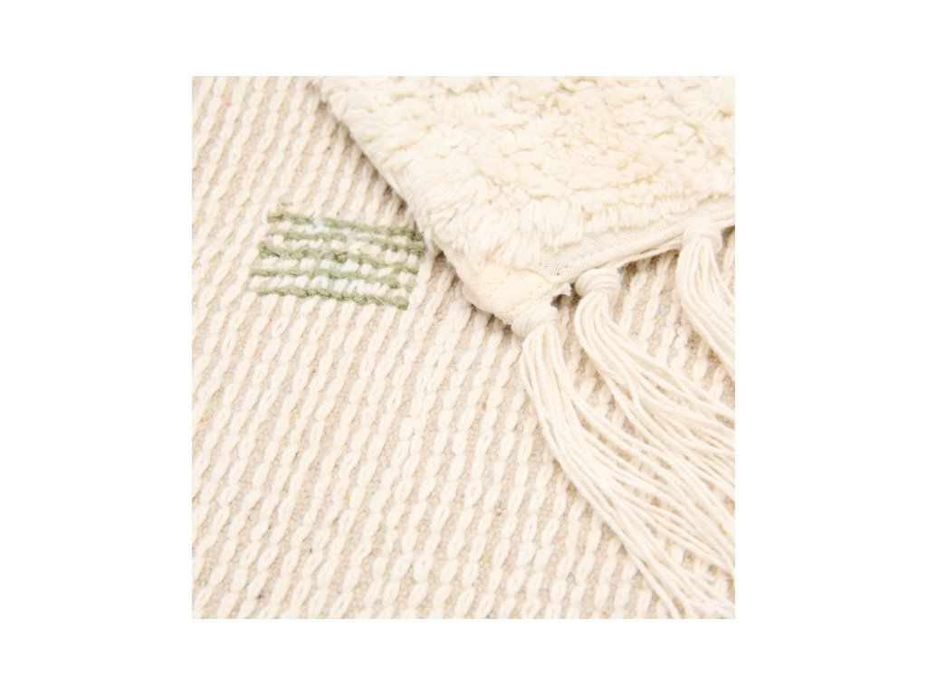 Koberec je vyroben ze 100% organické bavlny s vysokou gramáží a jeho protiskluzová latexová vrstva zajišťuje bezpečné používání. Předložku lze snadno prát v pračce a sušit v sušičce, což usnadňuje její údržbu.
