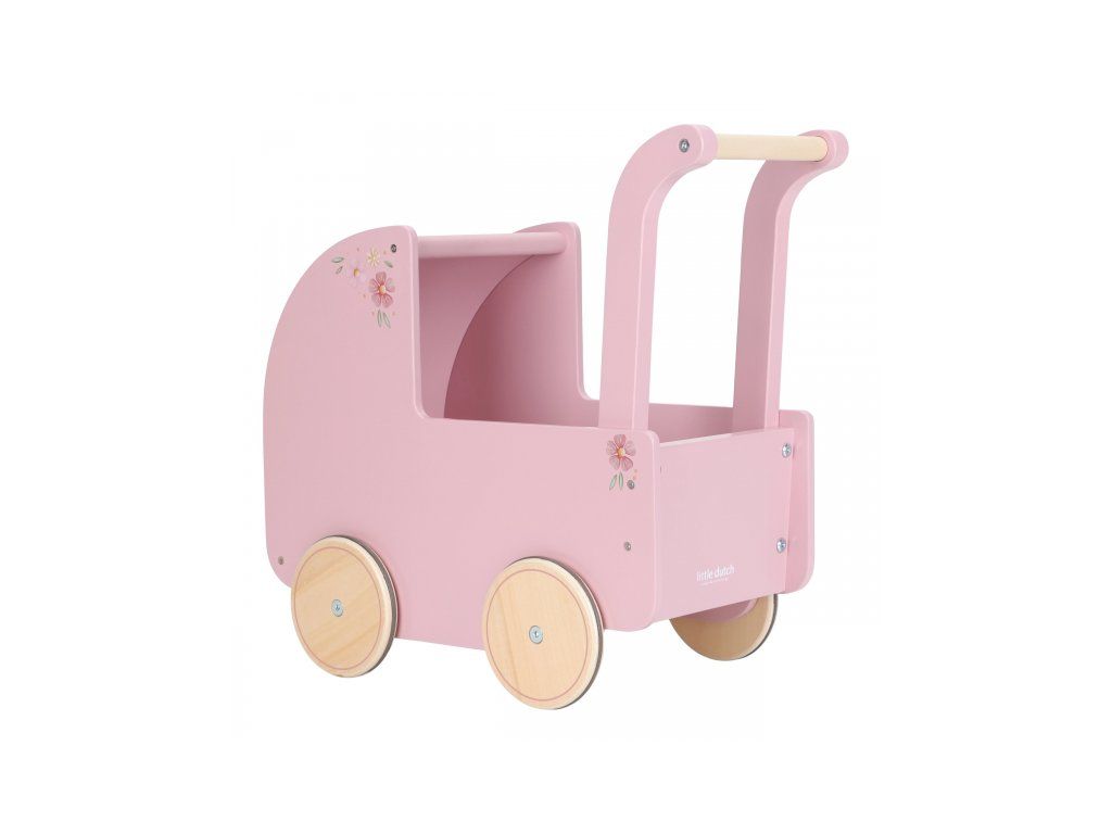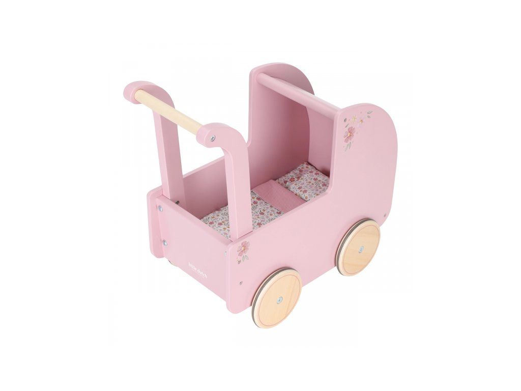 Little Dutch Kočárek pro panenky dřevěný s peřinkou Pink