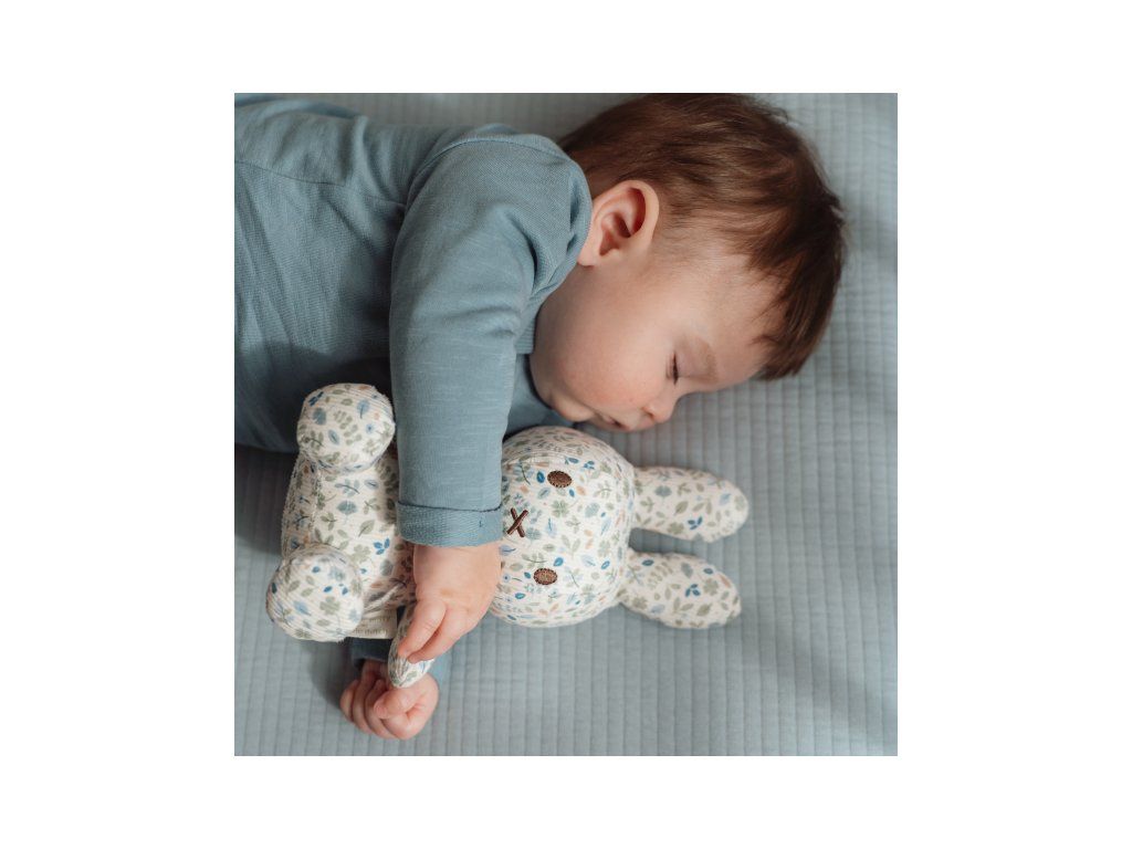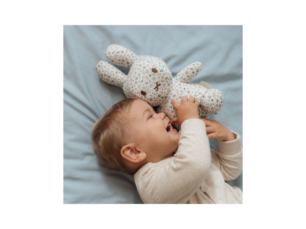 Rozkošný králík z jemného manšestru láká ke hraní i mazlení před spaním v postýlce. Slouží také jako krásná dekorace do dětského pokojíčku.