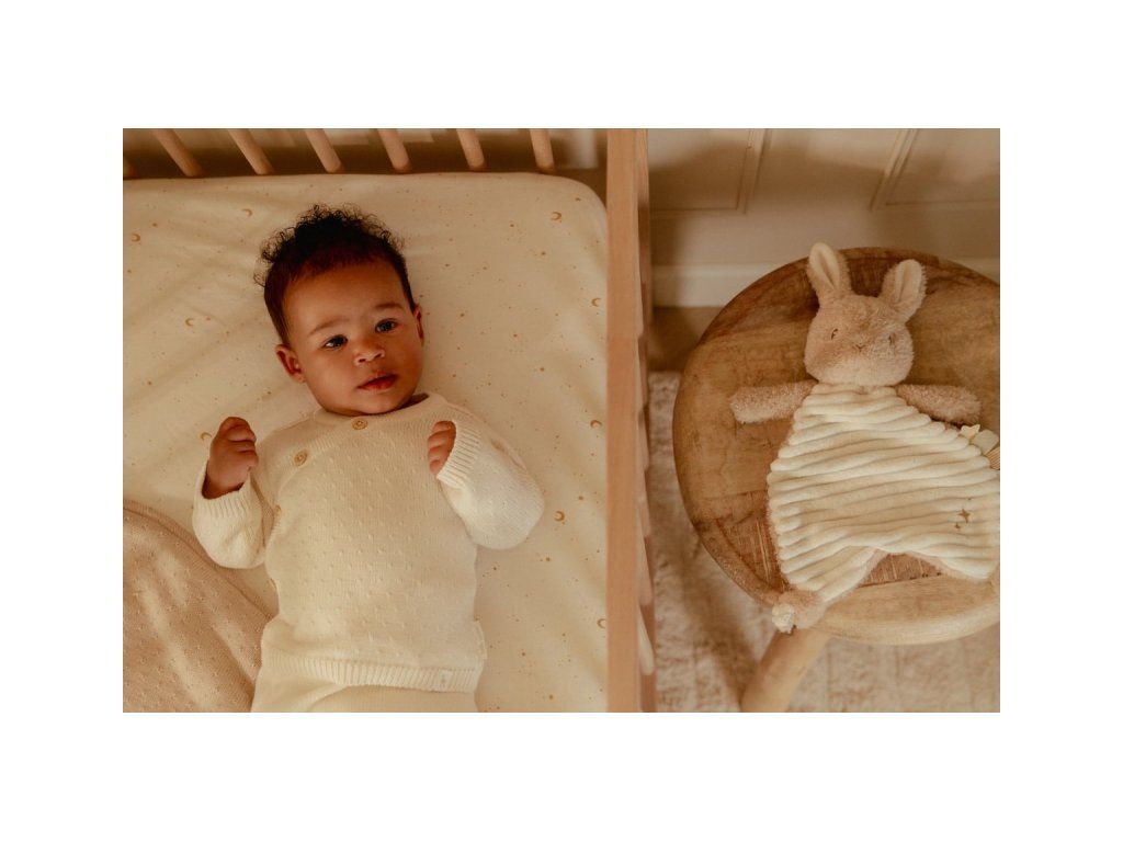 Rozkošný mazlíček v podobě králíčka z jemného plyše láká ke hraní i mazlení před spaním v postýlce či v kočárku.
