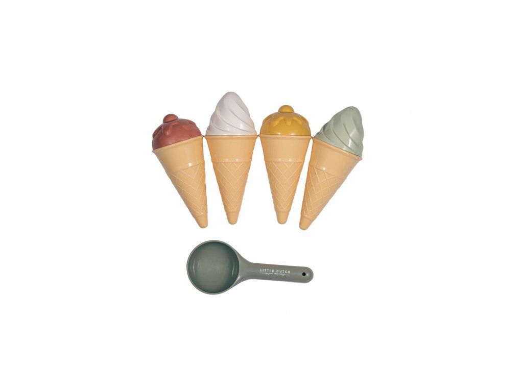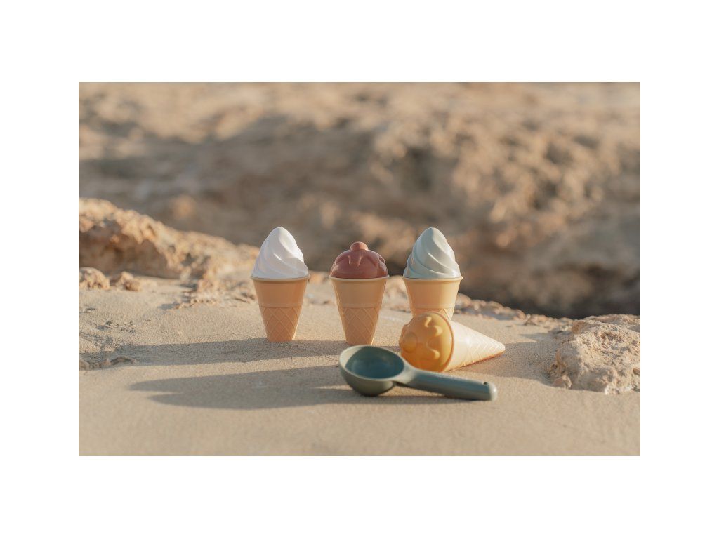 Zmrzlina patří k létu a s touto rozkošnou sadou si ji vaše děti vyrobí i z písku. Sada čtyř kornoutů, naběračka na zmrzlinu a čtyři formičky ve tvaru zmrzliny.