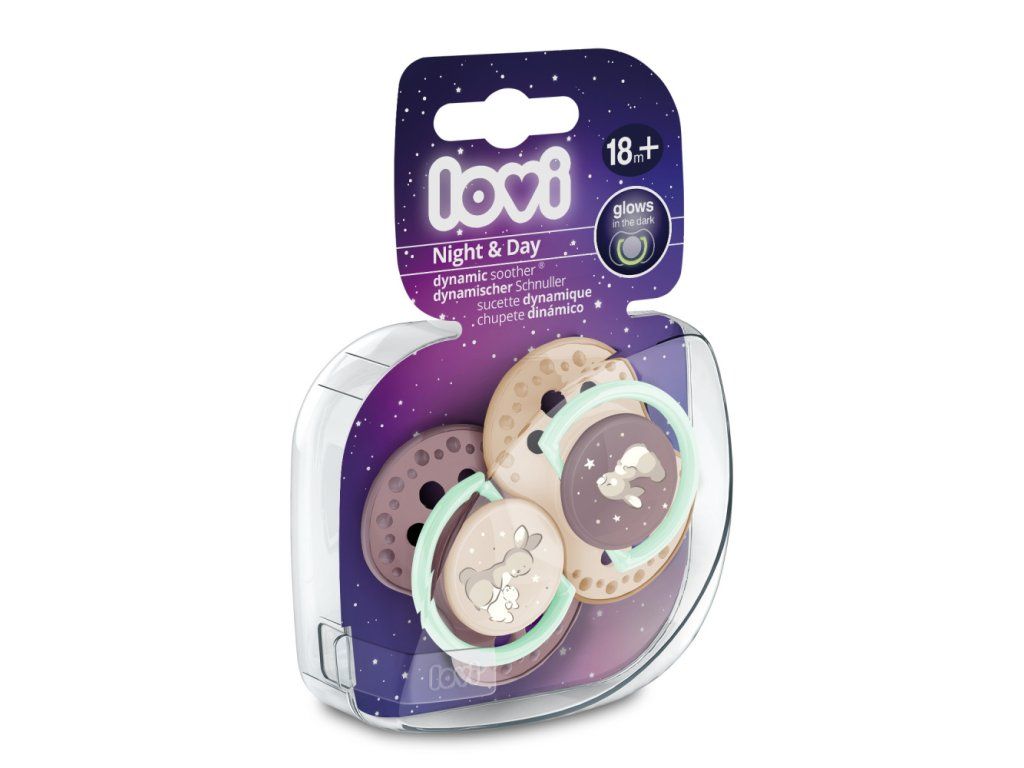 Dynamické dudlíky LOVI® byly vytvořeny ve spolupráci s neurologopedy. Unikátní design nerovnoměrné vrstvy silikonu a symetrický tvar inspirovaný matčinou bradavkou. Osvěžující moderní vzory podtrhuje svítící úchyt ve tmě.