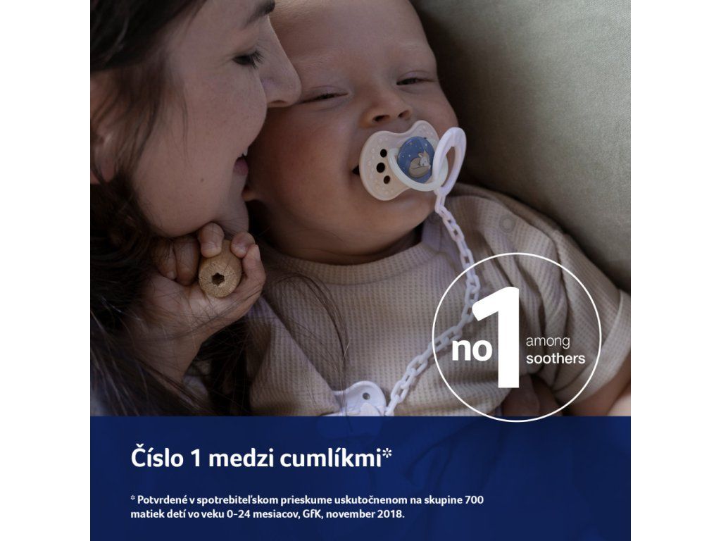 Umožňuje dítěti volně dýchat nosem. Je vyroben z bezpečného materiálu, který neobsahuje BPA. Jedinečný okraj štítku je vyroben ze zdravotnického materiálu, je příjemný na dotek a zabraňuje otlačení dudlíku.