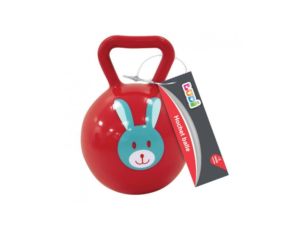 Měkké chrastítko ve tvaru míčku s rukojetí pro snadné uchopení.