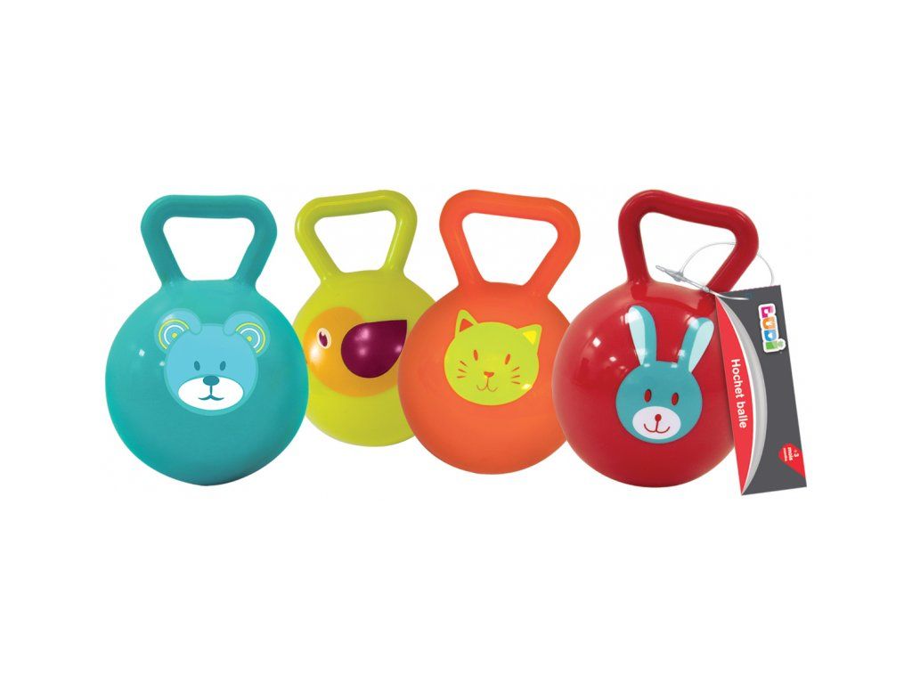 Chrastítko je dodáváno v různých barvách a s různými potisky zvířátek.