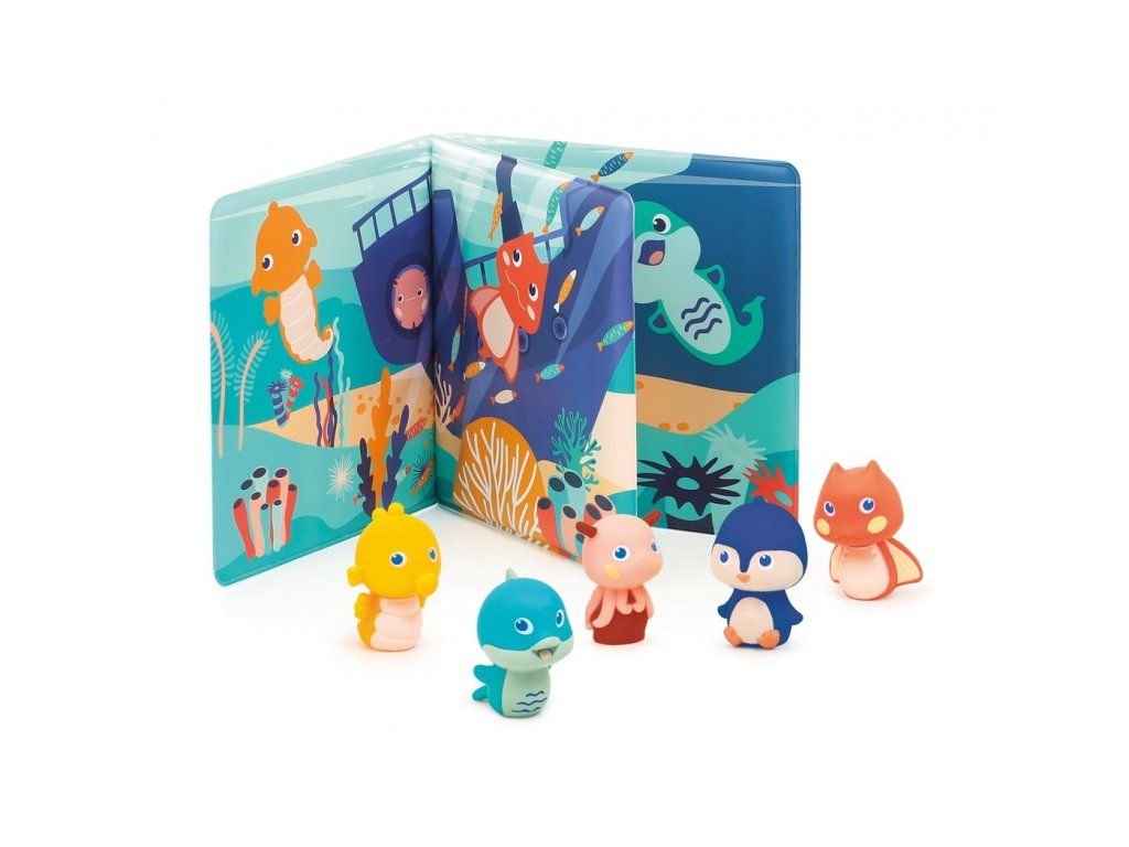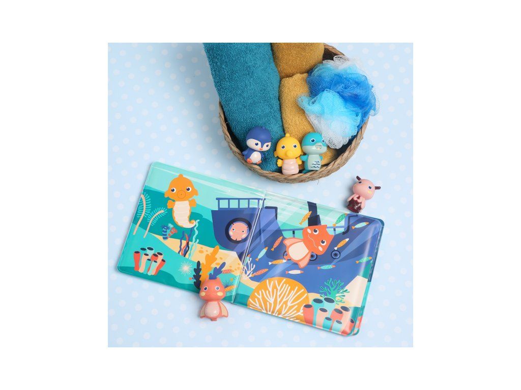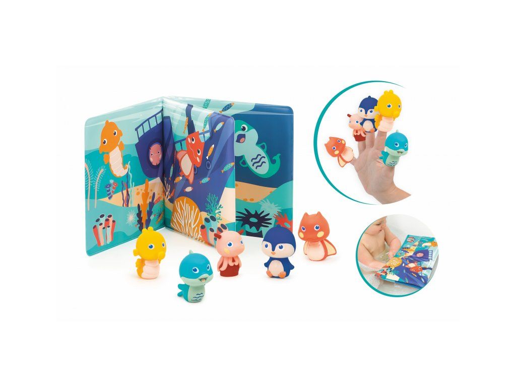 Knížka do vany se zvířátky, která ožívají v prstech! Tato interaktivní koupací knížka s pěti prstovými loutkami přenese děti pod hladinu moře, kde na ně čekají barevné ilustrace, veselá zvířátka a neomezený prostor pro fantazii. Ideální do vany, bazénu i mimo vodu – na hraní není nikdy špatný čas!