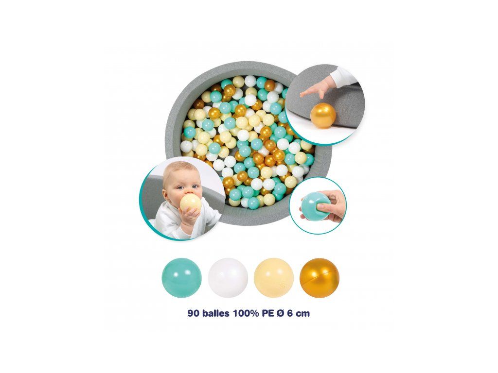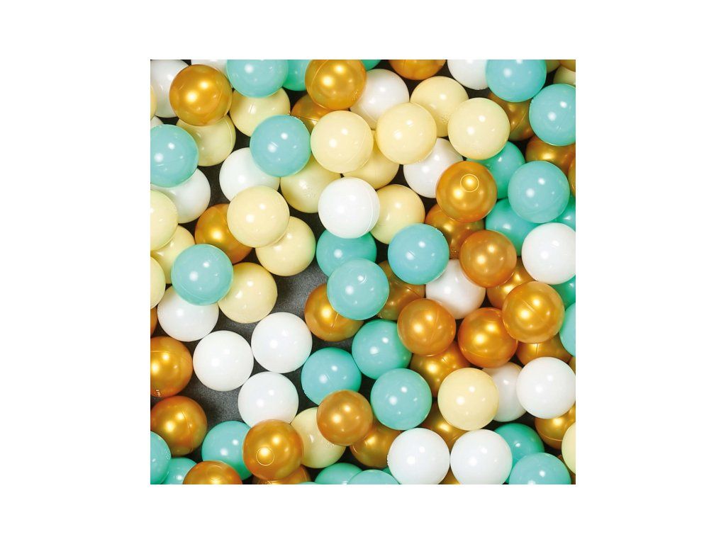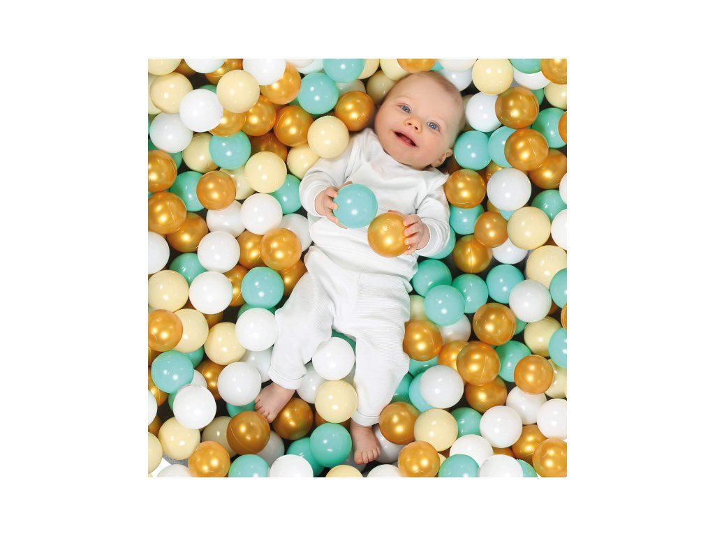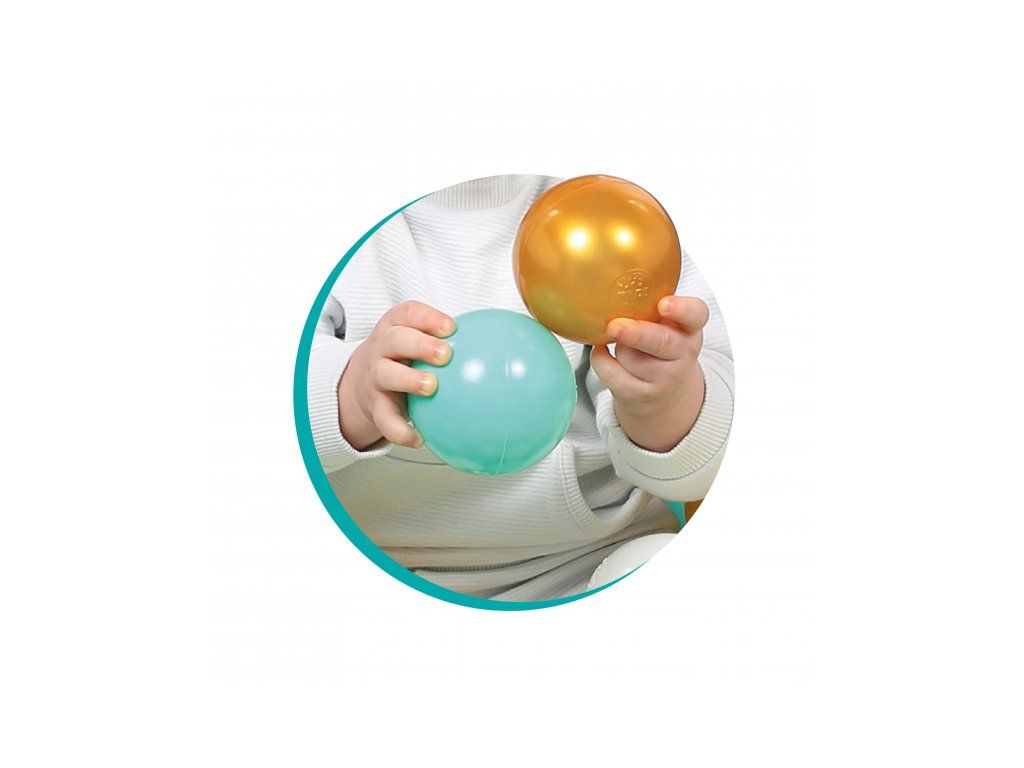 Díky průměru 6 cm se míčky dětem snadno drží, hází i mačkají – podporují tak rozvoj jemné motoriky a koordinace pohybu. Jemné odstíny ladí s každým interiérem: kombinace bílé, béžové, modré a zlaté vytváří elegantní a nadčasový vzhled, který si zamilují děti i rodiče.