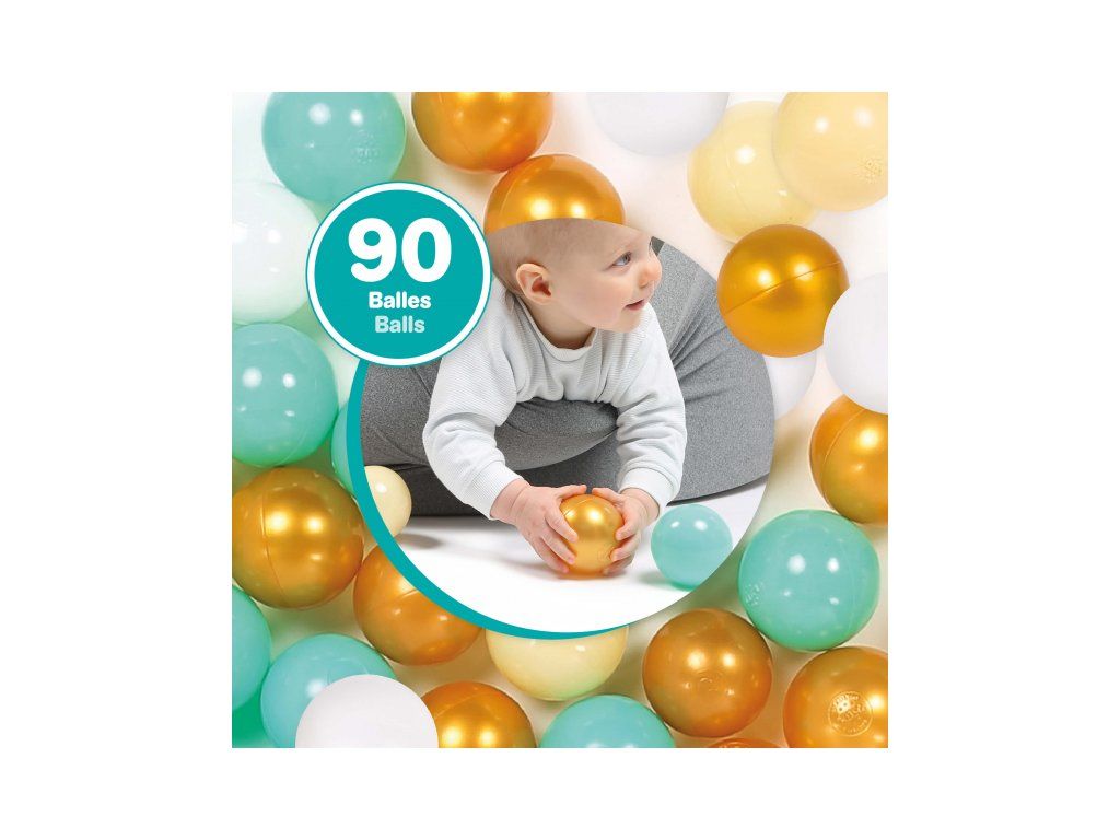 Sada 90 plastových míčků je ideální pro doplnění hracích ohrádek, bazénků nebo jako základ pro vlastní míčkový bazén. Měkký, ale odolný materiál zajišťuje bezpečné hraní i pro nejmenší.