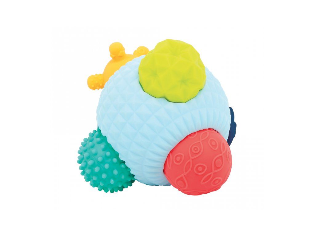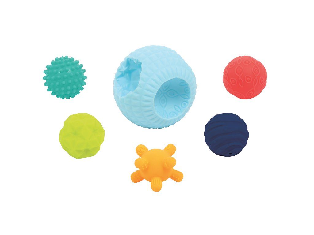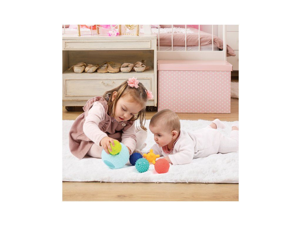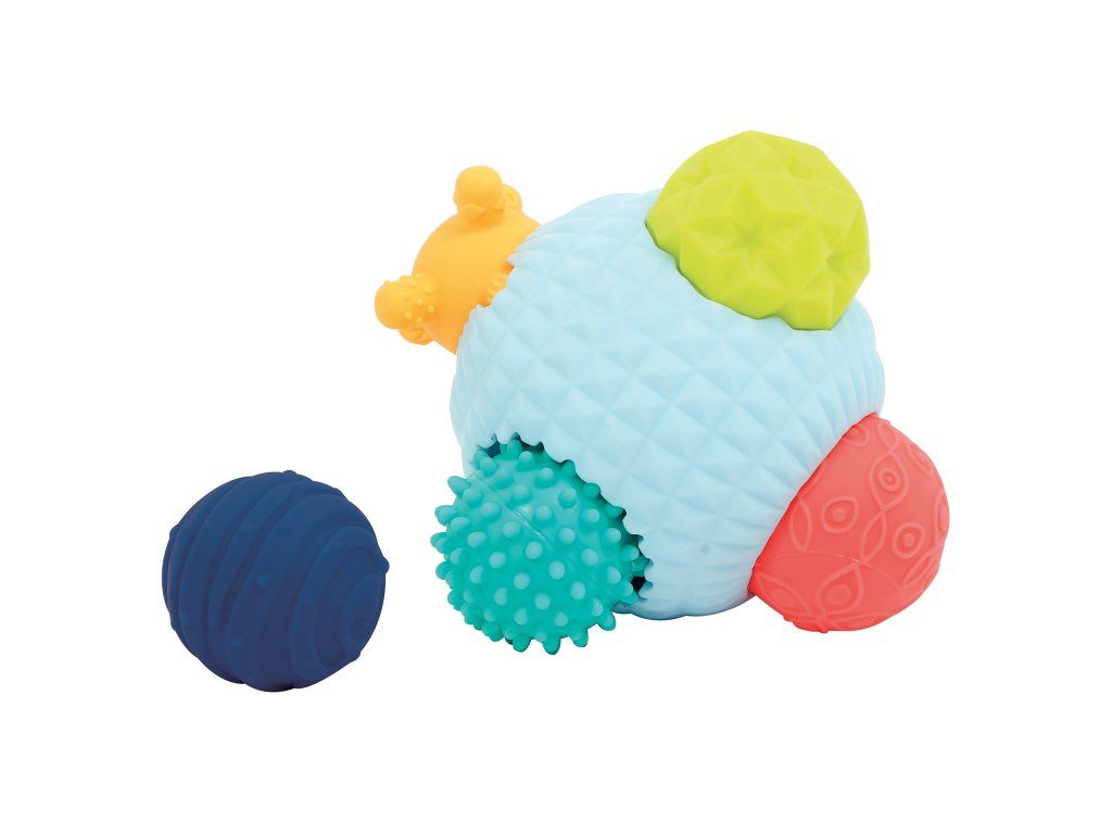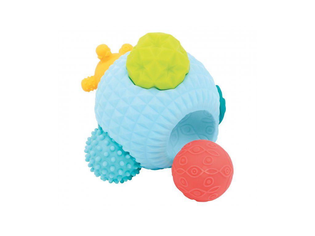3D puzzle z míčků tvoří jeden velký míček s otvory a 5 menších míčků s různorodými texturami. Míčky, které se liší barvou, velikostí i povrchem, povzbuzují dětskou zvědavost a lákají ke zkoumání. Každý míček pasuje do jednoho z pěti otvorů ve velkém míčku. Děti budou nadšeně malé míčky z otvorů vytahovat a poté se snažit je vrátit na své místo.