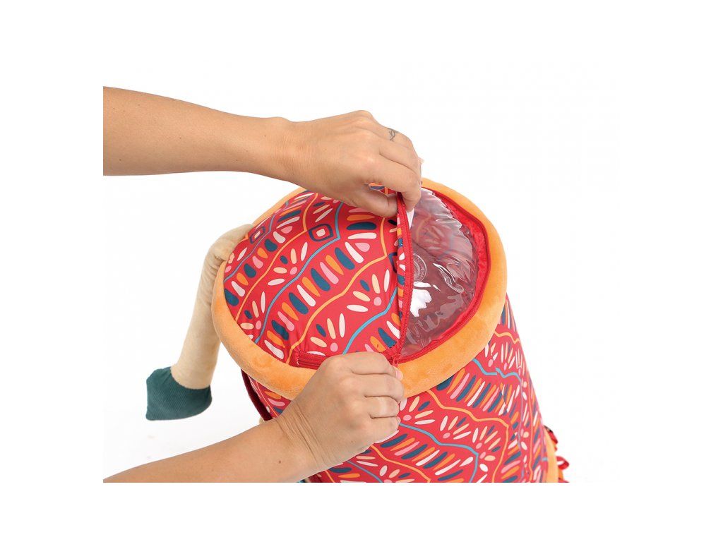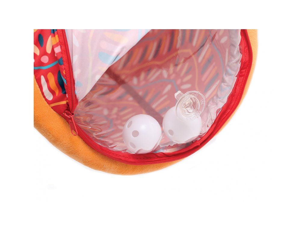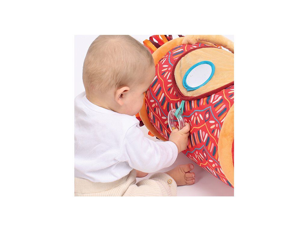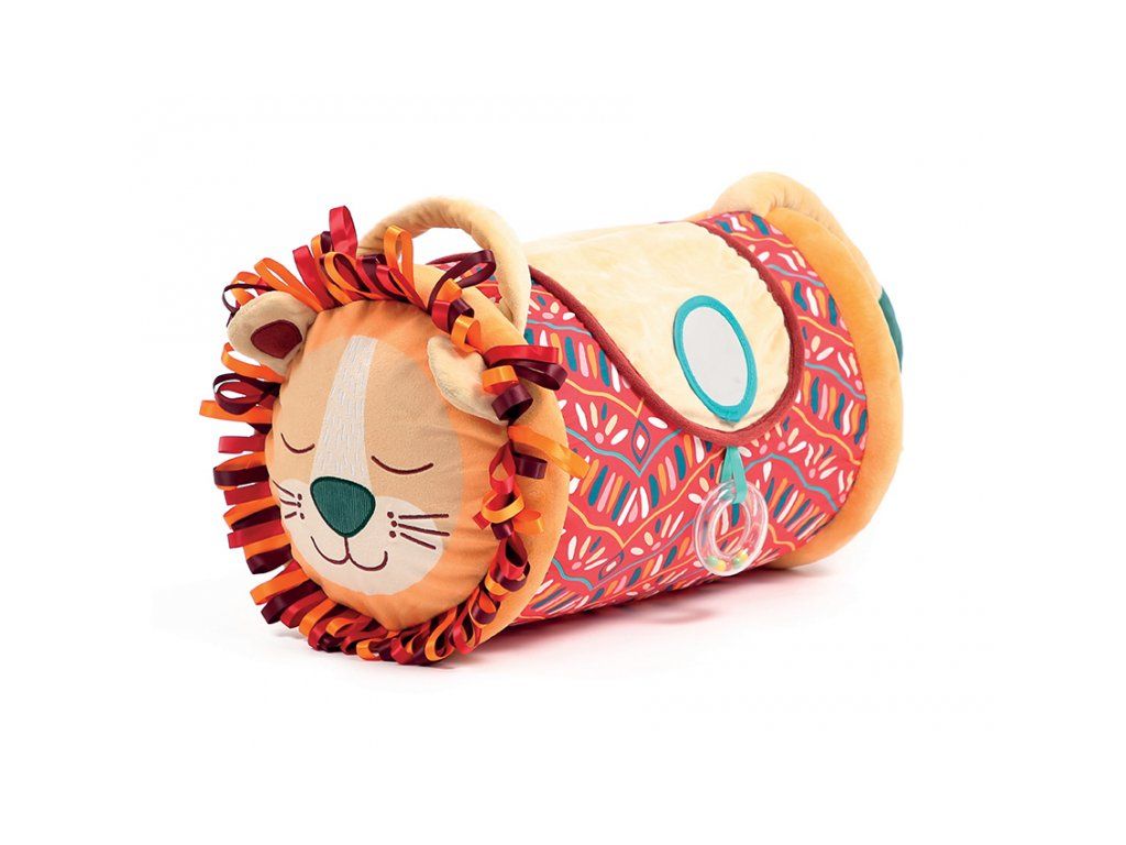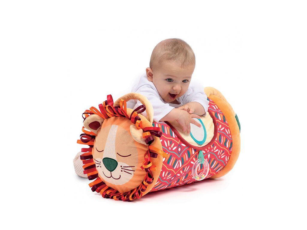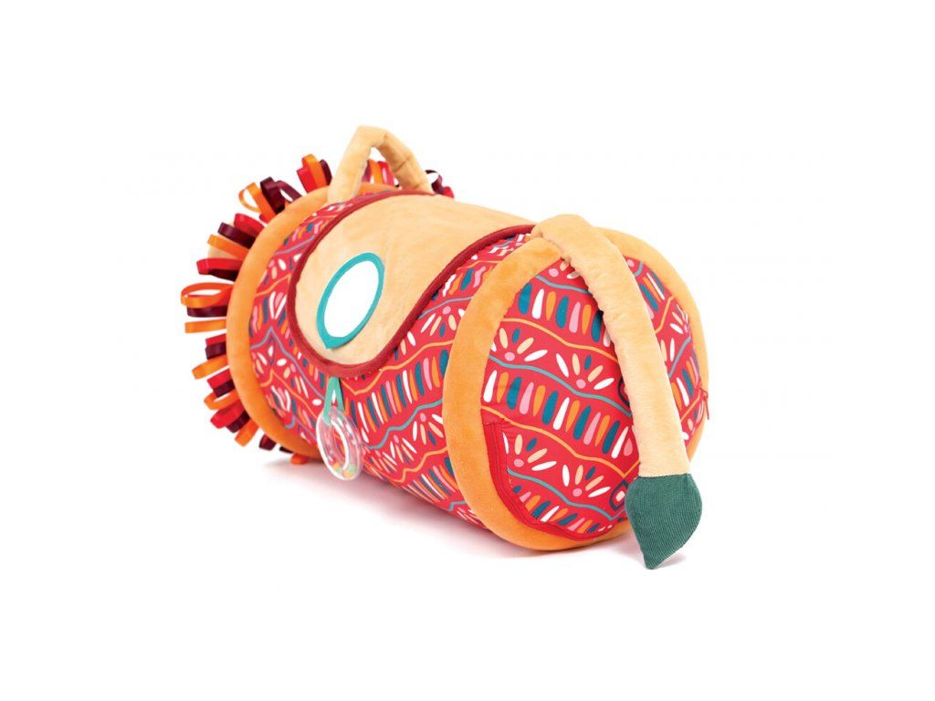 Originální hračka ve tvaru válce s množstvím aktivit ke zkoumání zabaví dítě a současně podněcuje rozvoj jeho smyslů a motorických dovedností. Uvnitř skrývá cinkající míčky, textilní potah nabízí různorodé textury, bezpečné zrcátko i chrastítko.