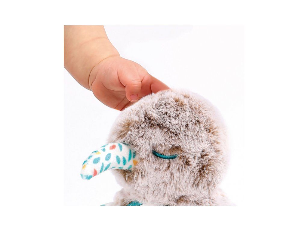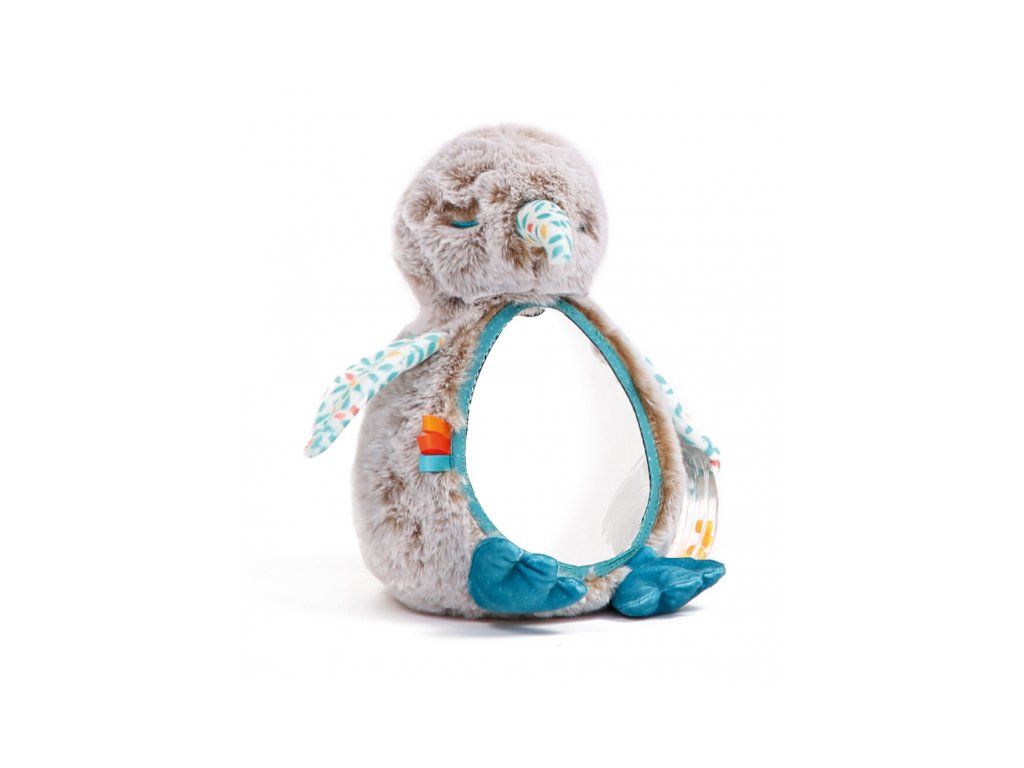 Měkká plyšová hračka v podobě rozkošného kiwi se zrcátkem, šňůrkou s korálky a chrastícími kroužky s kuličkami láká k mazlení i zkoumání a objevování.