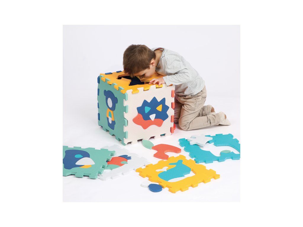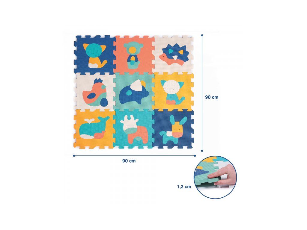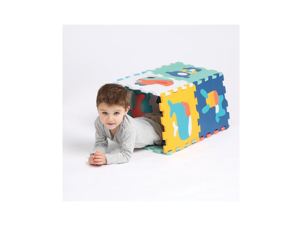 Sada devíti různobarevných pěnových puzzle Ludi s vyjímatelnými zvířátky slouží ke hraní i jako hrací podložka a dekorace do dětského pokoje. Různé textury, barvy a motivy podporují rozvoj smyslů, motorických dovedností a představivosti dítěte. Ve starším věku dítěte se s jejich pomocí může učit poznávat zvířata.