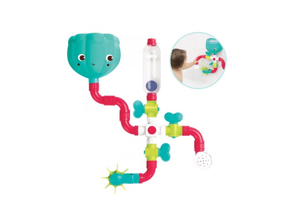 S touto hračkou do koupelny nebude ve vaně nikdy nuda! Velký vodní okruh s kohoutky, nádrží, sprchou a vodním mlýnkem nabízí mnoho variant sestavení pro zkoumání účinků vody.