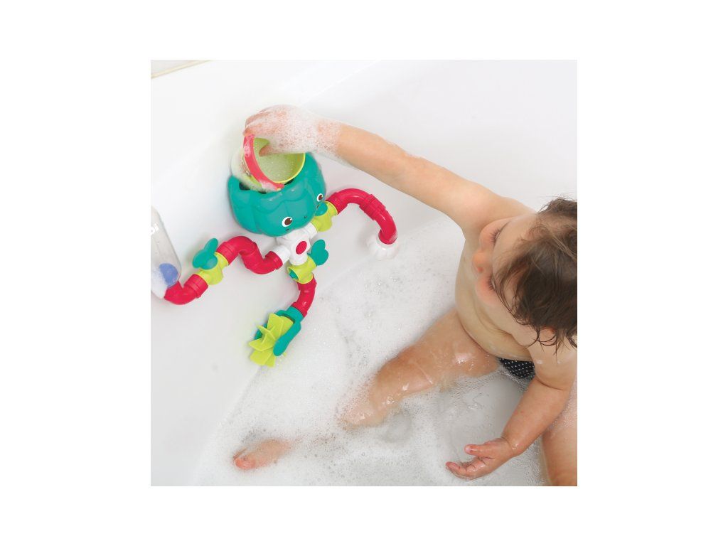 Hračka se snadno připevní na vanu či dlaždice pomocí přísavek.
