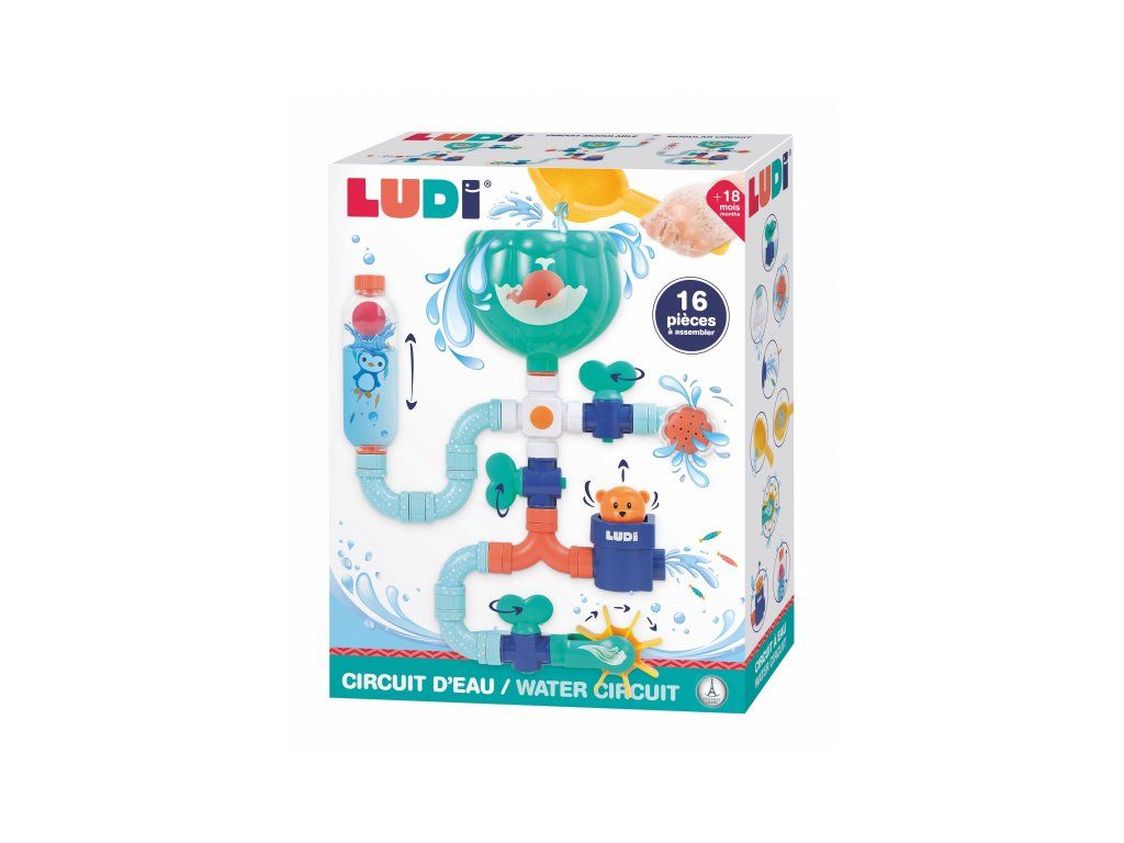 Když dítě nalije vodu do nádrže a otevře kohoutky, aktivuje se celý okruh! Dítě se bude bavit sledováním, jak v zásobníku vody stoupající míček indikuje hladinu vody a na druhé straně proud tekoucí vody roztáčí mlýnek. Zavíráním jednotlivých kohoutků se proud vody zastaví a dítě se tak během hry učí rozumět příčině a následku, rozvíjet své pozorovací schopnosti i svou obratnost.