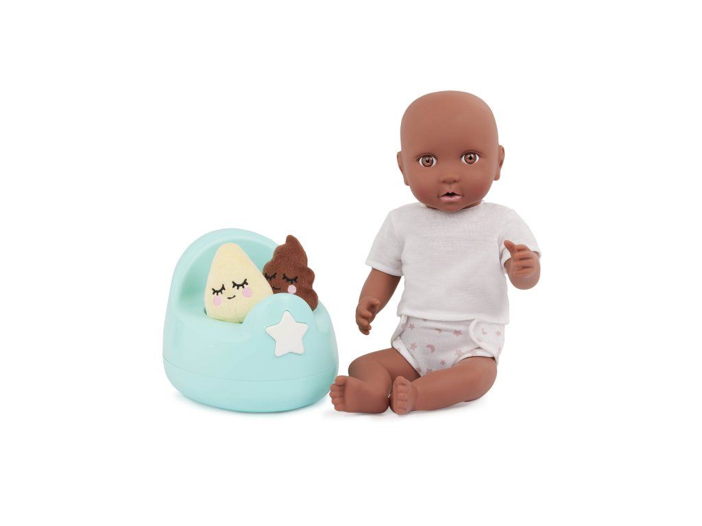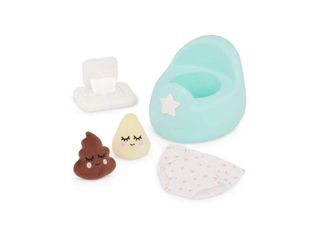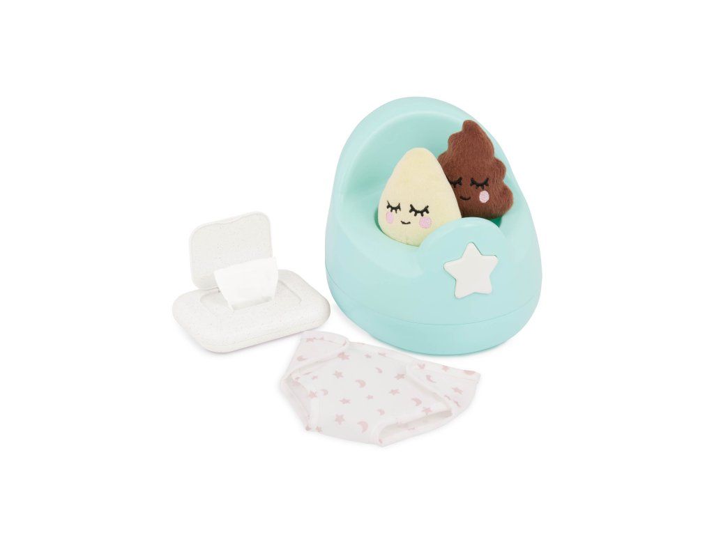 S touto zábavnou tréninkovou sadou LullaBaby se vaše děti mohou naučit svou panenku chodit na nočník. Nočník nabízí pro větší zábavu dva veselé zvukové efekty, které podpoří hru na každodenní situace. Součástí sady je kromě nočníku plínka, krabička se ubrousky a dvě plyšové hračky. Sada pomáhá během pečující hry rozvíjet jemnou motoriku, představivost i sociální dovednosti.