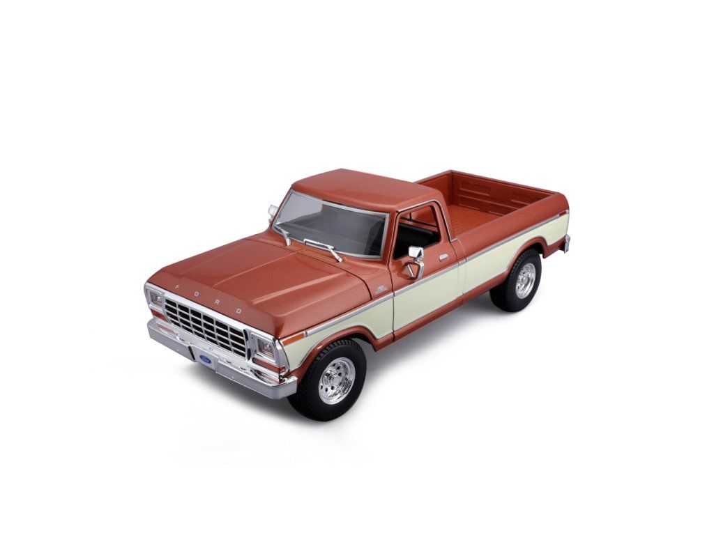 Maisto 1:18 Ford 1979 F150 pick-up kovový hnědo-krémový model auta. Modely autíček Maisto ze speciální edice jsou odolné na hraní a zároveň si zachovávají maximální možnou míru detailů. Ideální jako dárek pro každého fanouška aut. Precizní sběratelský odlitek. Otevírací dveře. Detailní motor a interiér. Vlastní dvoubarevný lak. Chromovaná mřížka a ozdobné prvky. Gumové pneumatiky. Rozměry balení: 16,5x33x12,7cm. Věk: 3+