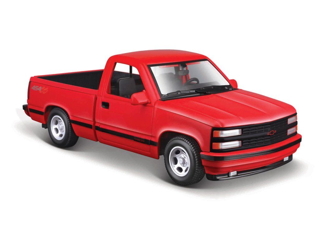 1993 Chevrolet 454 SS pick-up. Kovové modely Maisto v měřítku 1:25 patří mezi nejoblíbenější. Mají velmi dokonalé detailní provedení jednotlivých částí a kvalitní barevné provedení. Model má otevíratelnou přední kapotu a přední dveře. Baleno v krabičce. Nevhodné pro děti do 3 let. Rozměry balení: 22,8x10,5x11,4cm. Věk: 3+