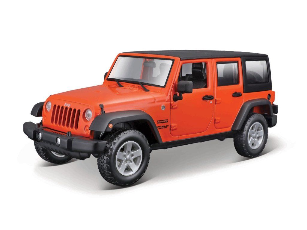 Jeep Wrangler Unlimited 2015 má řiditelná kola, gumové pneumatiky, otevírací dveře a kapotu. Vyrobeno z kovového odlitku s plastovými díly. Detailně zpracovaný interiér a exteriér. Rozměr balení: 30,5x15,8x14,5 cm. Věk: 3+