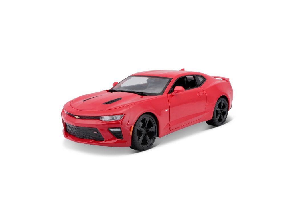 2016 Chevrolet Camaro SS, červený. Skvěle zpracovaný model překvapí detailním zpracováním interiéru i exteriéru. U modelu je možné otevřít dveře, víko motoru a kufru. Baleno v krabičce. Rozměry balení: 33x12,4x16,4cm. Věk: 3+