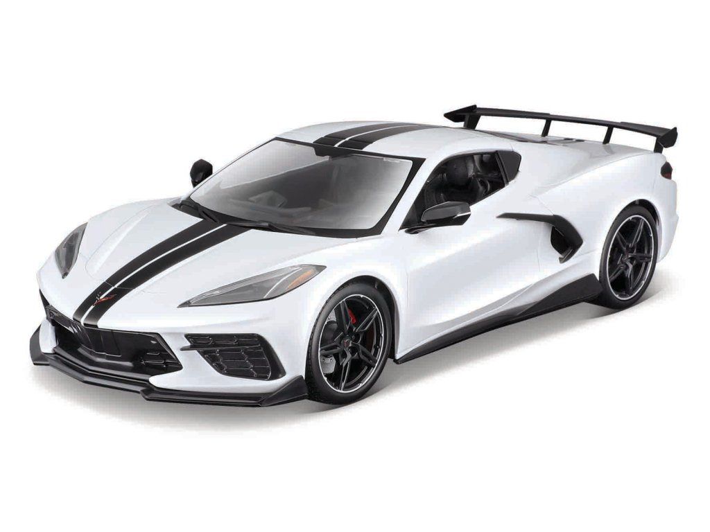Maisto - 2020 Chevrolet Corvette Stingray Coupe (High Wing), bílý, 1:18