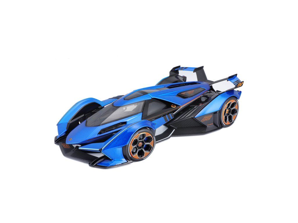 Lamborghini V12 Vision Gran Turismo. Zcela nový odlévaný model vozu v měřítku 1:18 modelu Lamborghini V12 Vision Gran Turismo. Skutečné gumové pneumatiky. Otočná kola. Má otevírací kapotu a dveře. Kovový model s plastovými díly. Detailně propracovaný interiér, exteriér, motorový prostor. Rozměry balení: 34,6x13,8x18,7 cm. Věk: 3+