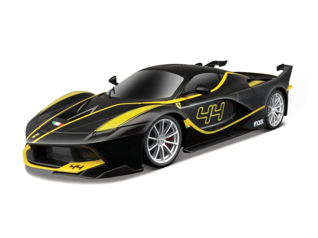 Ferrari FXX K, černé. Model sportovního vozidla značky Maisto na dálkové ovládání. Model má funkční světlomety. V měřítku 1:14. Autíčko jezdí na 6ks AA baterií. Ovladač je na 2xAAA baterie. Baterie nejsou součástí balení. Dosah ovládání až 35m. Rozměry balení: 45,69x15,88x20,32cm. Věk: 5+