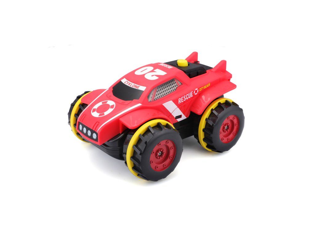 Cyklone Aqua Tread, červená barva. Plastový model značky Maisto na dálkové ovládání. Jedná se o skvělé auto, se kterým můžete jezdit i ve vodě. Dokáže šplhat do kopců a otáčet se. Auto funguje na 4x AAA baterie (nejsou součástí). Ovladač má dosah až 35 metrů a používá 2x AAA baterie (nejsou součástí). Rozměr balení: 25,4x13,4x14 cm. Věk 5+
