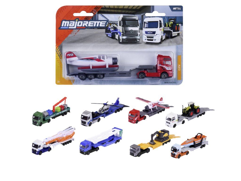 Nákladní auto s návěsem, kovové, s volným chodem, pohyblivé části. Délka cca 20 cm. Výběr z 8 druhů.