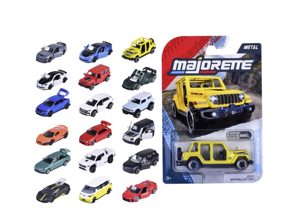 Kovové autíčko na volnoběh. Otevírací a/nebo pohyblivé části. Délka 7,5 cm. 18 druhů.