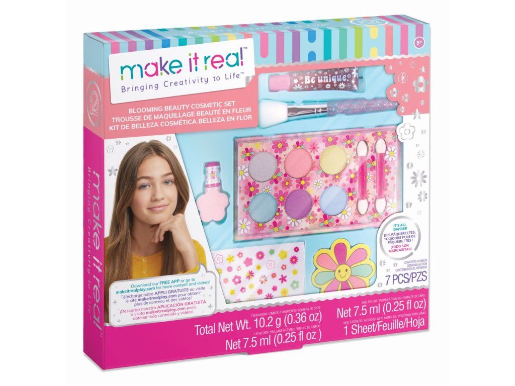 Připravte své nehty na růžový lak pomocí květinového pilníku a doplňte ho nálepkami na nehty. Doplňte svůj květinový vzhled pomocí lesku na rty, paletky očních stínů a kosmetického štětce. Věk od 8+.