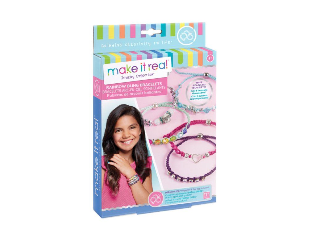 Výroba náramků z bavlněk a korálků. Korálky se vkládají nebo navlékají na bavlnky, které jsou součástí balení. Obsahuje velké množství barevných a třpytivých korálků. Baleno v krabici. Doporučený věk 8+