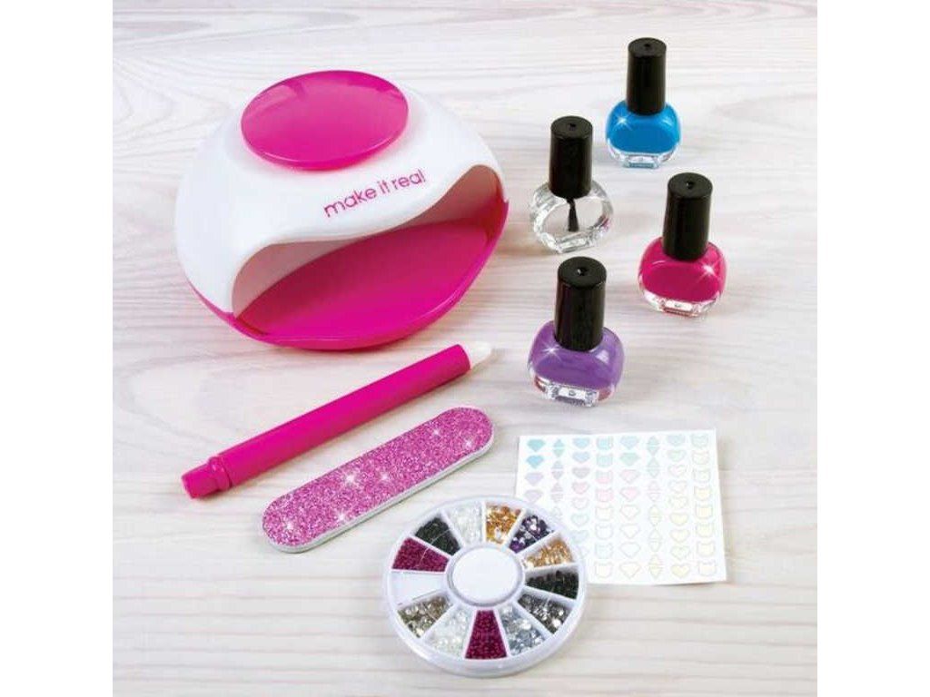 Balení obsahuje sušičku na nehty, 3 barvy laku na nehty, průhledný vrchní lak, zásobník na ozdoby, zdobicí tyčinka na nehty, samolepky na nehty, pilník na nehty, návod. Baleno v krabici. Vhodné od 8 let.